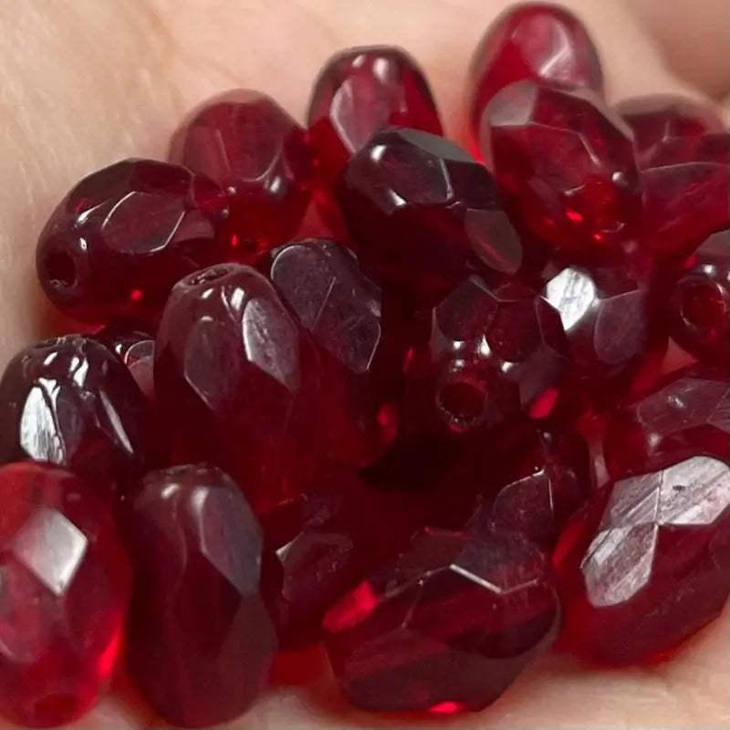 25 Vintage Red Siam Czech Oval Faceted Glass Beads