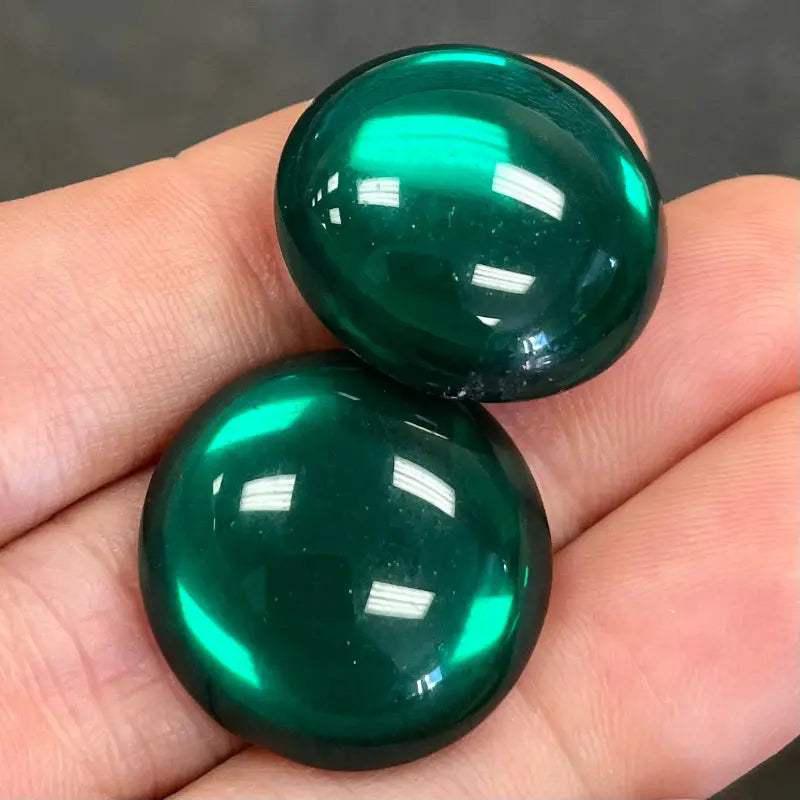 2 Vintage Opal Foiled German Round Glass Cabochons