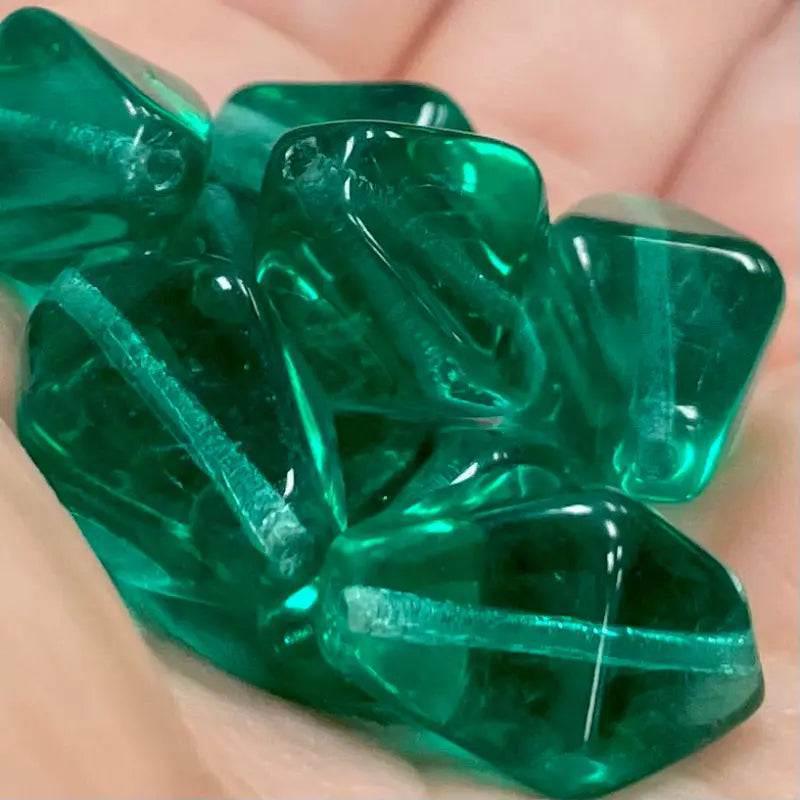 8 Vintage Green Emerald Green Diamond Glass Beads